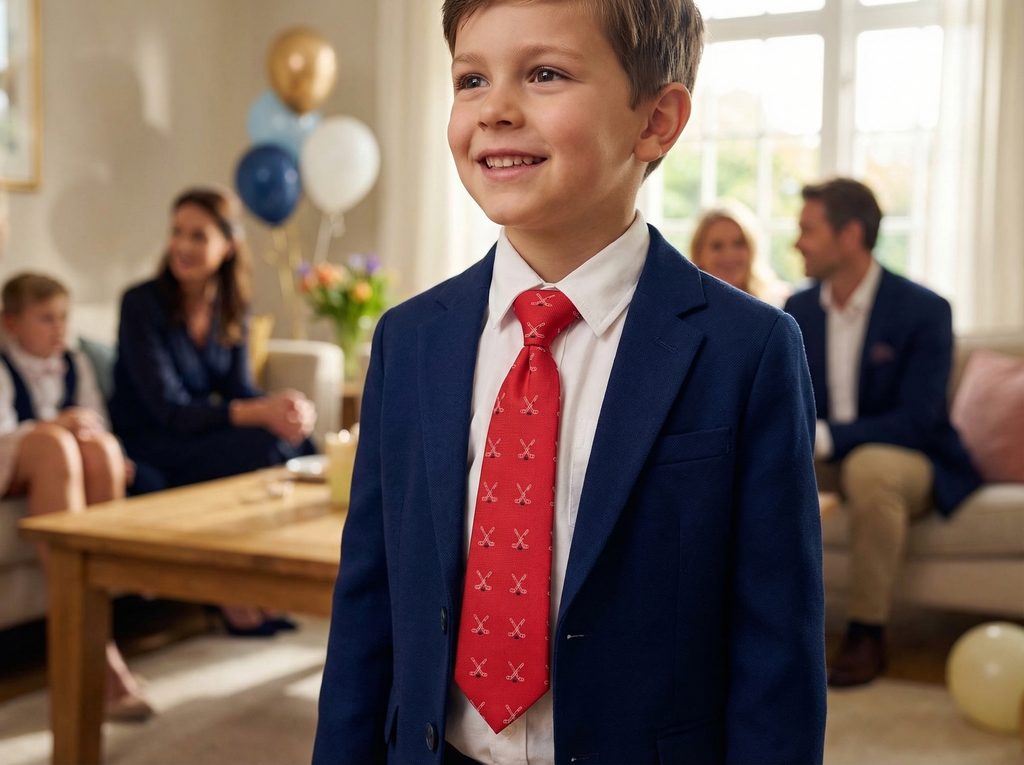 Táto chlapčenská kravata s hokejovým motívom je skvelou voľbou pre deti, ktoré milujú ľadový hokej. Výrazná červená farba spolu so športovým vzorom dodáva slávnostnému outfitu hravý a originálny charakter. Kravata sa hodí na rodinné oslavy, školské vystúpenia alebo iné príležitosti, kde môže malý hokejista ukázať svoju obľúbenú športovú tému aj v elegantnom oblečení.