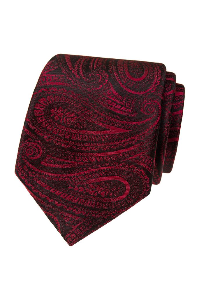 Štýlová červená kravata s jemným paisley vzorom dodá outfitu charakter a eleganciu. Moderná šírka 7 cm sa hodí ku klasickým aj slim oblekom. Polyesterový materiál zabezpečuje stály tvar, sýtu farbu a jednoduchú údržbu. Ideálna voľba pre formálne a spoločenské príležitosti.