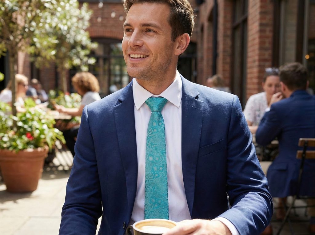 Jemný lesk a svieža farba vytvárajú zaujímavý prvok v celkovom vzhľade. Tyrkysový tón pôsobí ľahko a zároveň výrazne, zatiaľ čo kvetinový vzor sa prirodzene prelína s povrchom látky a mení sa podľa dopadu svetla. Kravata tak oživí každodenný outfit aj formálnejšie kombinácie bez toho, aby pôsobila prehnane.