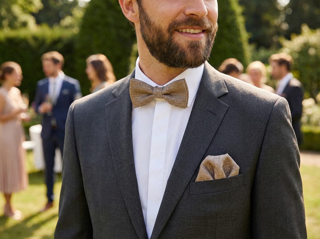 Tento motýlik s vreckovkou vyniká svojou univerzálnou béžovou farbou, ktorá sa ľahko kombinuje s rôznymi outfitmi. Či už sa chystáte na svadbu, pracovnú schôdzku alebo inú formálnu akciu, tento doplnok dodá vášmu vzhľadu sofistikovanosť a štýl. Navyše, vďaka kvalitnému materiálu, z ktorého je vyrobený, vám bude slúžiť po dlhú dobu.