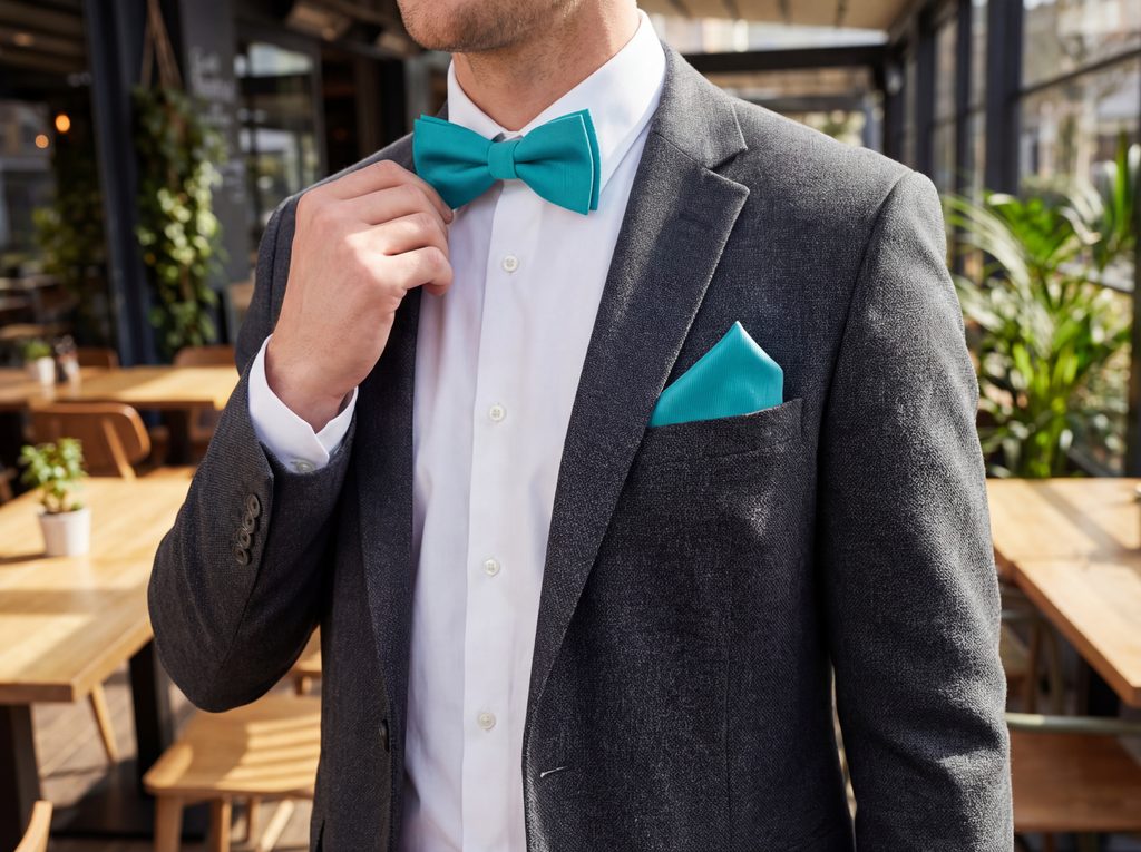 Tento typ motýlika funguje najlepšie v kombináciách, kde sa pracuje s materiálmi. Hladká košeľa, mierne matné sako a k tomu štruktúrovaný doplnok vytvoria vizuálne zaujímavý kontrast. Tyrkysová pritom dodá celku ľahkosť, takže sa hodí na večerné udalosti, štýlové oslavy aj moderné svadby, kde má outfit pôsobiť uvoľnene, ale stále upravene.