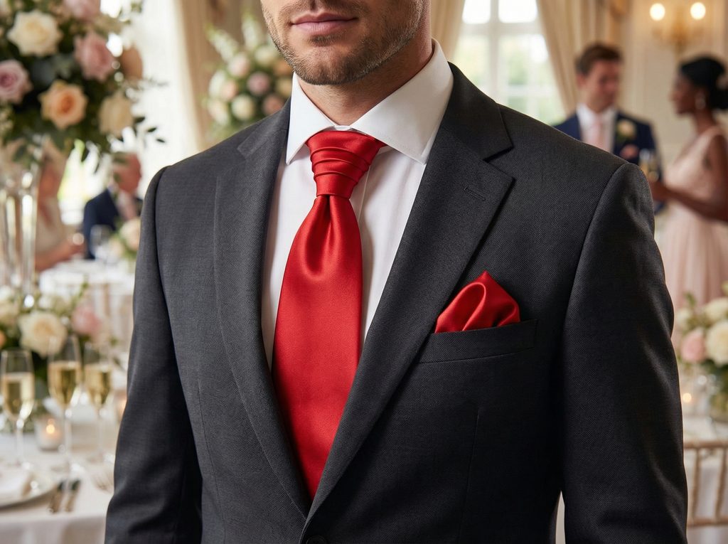 Pri čiernom obleku pôsobí výrazne a veľmi elegantne. Tmavomodrý oble k dodá modernejší kontrast. Biela košeľa zvýrazní čistotu farby. Lakované topánky podporia formálny charakter. Ideálna voľba pre mužov, ktorí chcú pôsobiť sebavedomo a nezabudnuteľne.