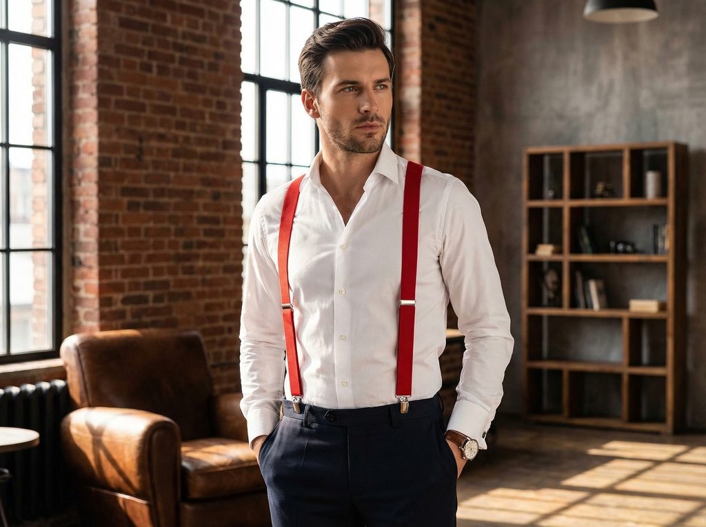Výrazná farba dokáže okamžite pritiahnuť pozornosť. Červené pánske traky s čiernym koženým stredom môžu byť zaujímavým doplnkom, ktorý oživí jednoduchý outfit a dodá mu energiu.