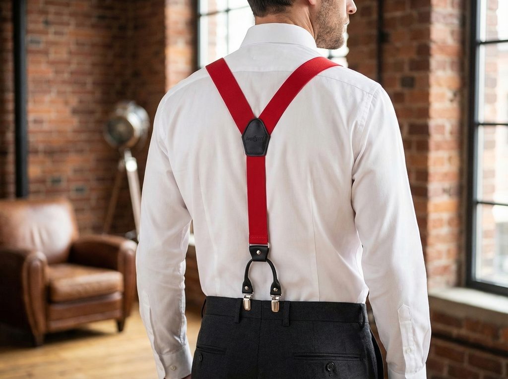 Ako nosiť červené pánske traky s čiernymi doplnkami