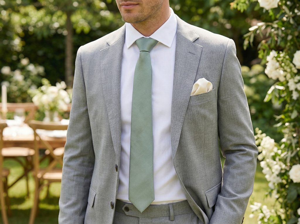 Skvele sa kombinuje s béžovým, svetlosivým či tmavomodrým oblekom. Na svadbu odporúčame bielu alebo krémovú košeľu. Výborná voľba pre záhradné obrady a letné oslavy.