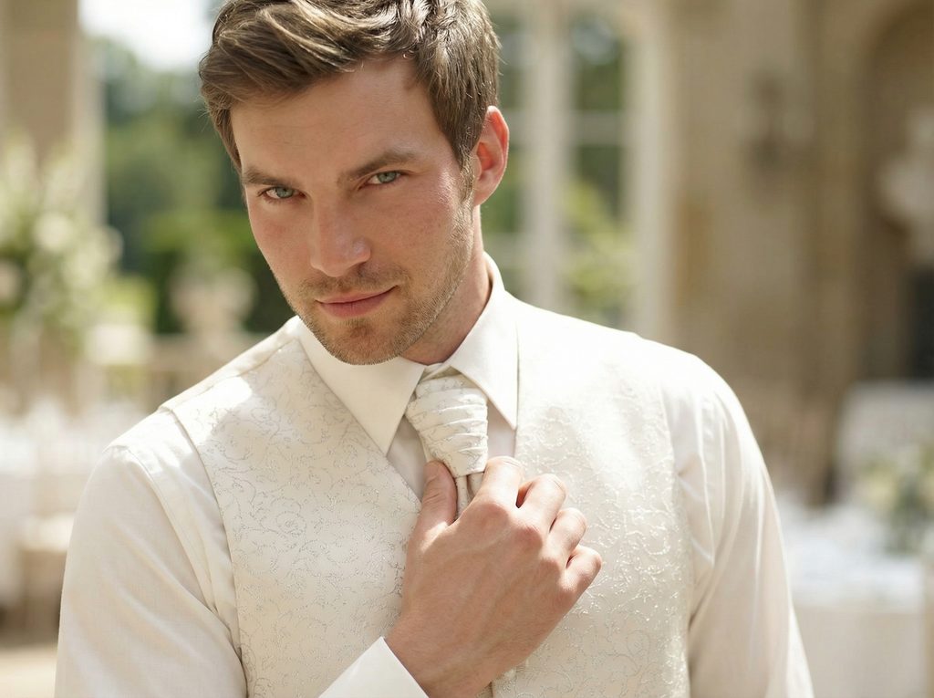 • Smotanový odtieň • Strieborný detail vo vzore • Set s vreckovkou • Nastaviteľné zapínanie