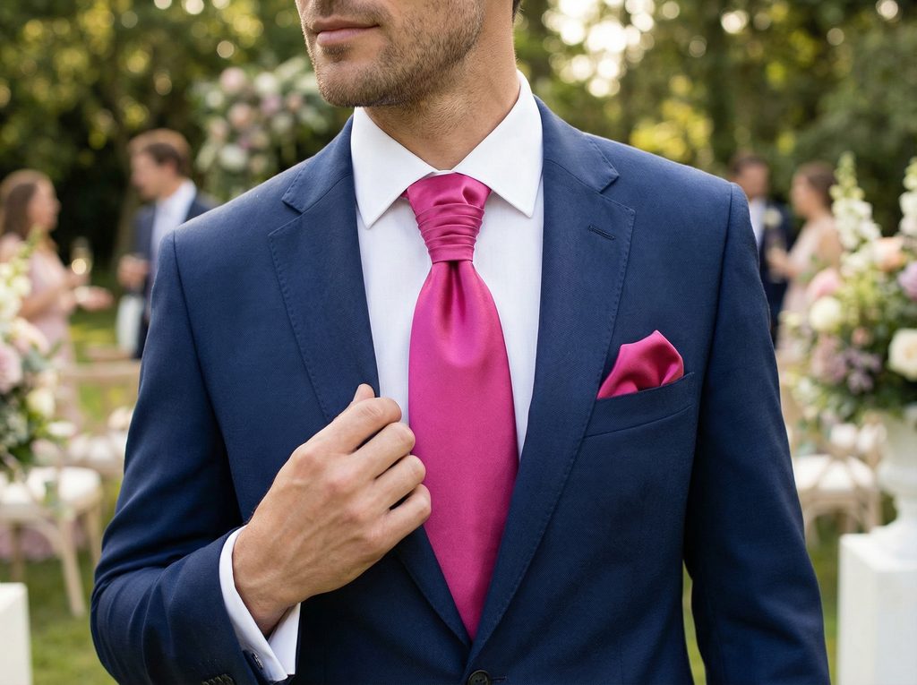 • sýty ružový odtieň• elegantný lesk• nastaviteľné zapínanie• predviazané prevedenie• vreckovka v balení