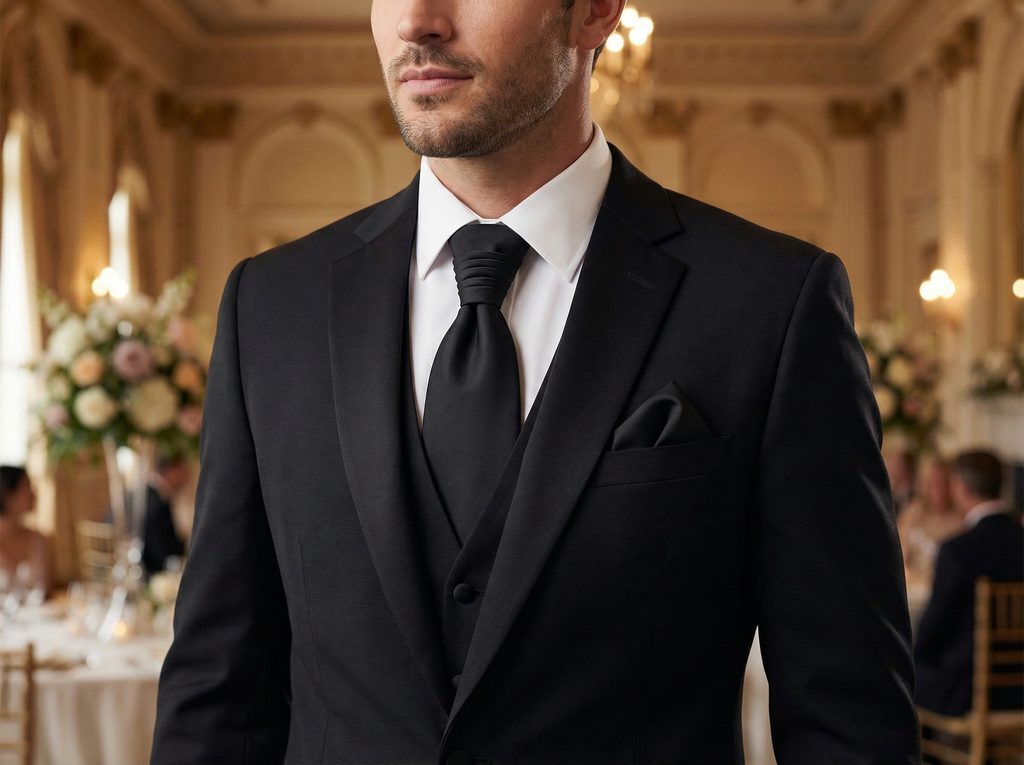 Pri večernej svadbe vynikne v kombinácii s dobre padnúcim čiernym oblekom. Tmavomodrý oblek dodá jemný kontrast. Biela košeľa zvýrazní čistotu línie. Strieborné manžetové gombíky doplnia detail. S čiernymi trakmi bude výsledok moderný a elegantný.