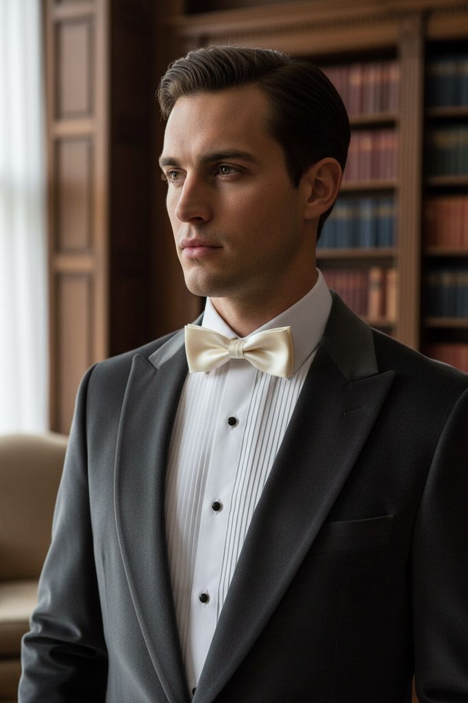 Predviazaný Hladký lesklý motýlik krémový o rozmere 12,5 cm dokonale padne k akejkoľvek frakovej či smokingovej košeli. Na zadnej strane motýliku je pripevnený háčik s očkom, vďaka tomu je možné ľahko regulovať dĺžku podľa obvodu Vášho krku.