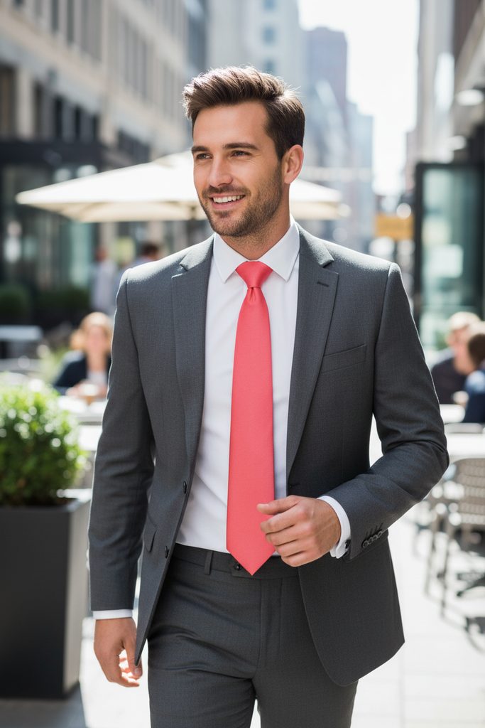 Prednosťou tejto polyesterovej kravaty šírka 7 cm Avantgard je vysoká odolnosť. Polyesterové vlákna sú vysoko odolné a preto polyesterová Matná kravata Avantgard koralovej farby vyniká ľahkou starostlivosťou. Polyester má všeobecne malú navlhavosť, to znamená, že sa rýchlo vysúša v prípade namočenia. Oproti kravatám vyrobených z hodvábu majú polyesterové kravaty nižší lesk.
