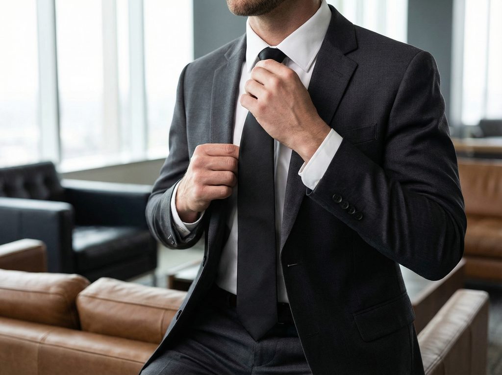 S čiernym oblekom vytvorí uhladený večerný vzhľad. Sivý model prinesie jemný kontrast. Tmavomodrý oblek pôsobí moderne a pokojne. Najkrajšie vynikne na bielej košeli, kde vznikne jasná línia. Matný efekt nepôsobí tvrdým dojmom ani pri umelom osvetlení. Celkový efekt je sebavedomý a upravený.