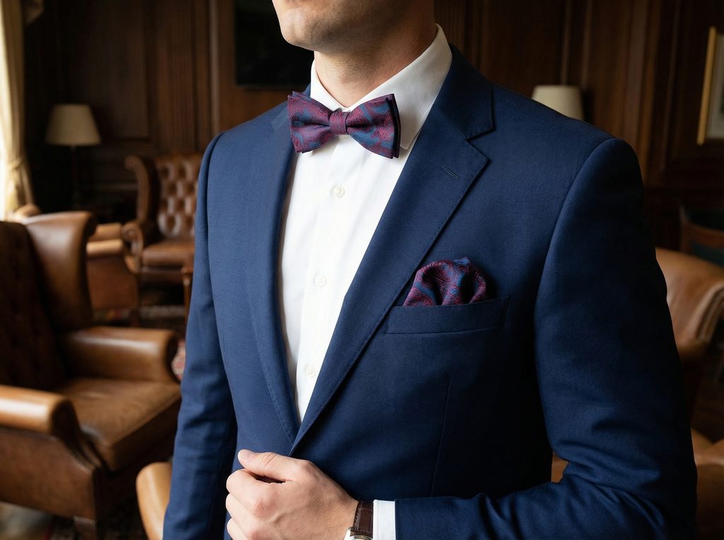 Takýto vzor funguje najlepšie v kombinácii s jednoduchšími kúskami. Pri svetlej košeli vynikne detail, zatiaľ čo tmavší oblek pomôže celý outfit opticky zjednotiť. Vínové prvky môžete jemne zopakovať aj na ďalších doplnkoch, aby výsledok pôsobil premyslene.