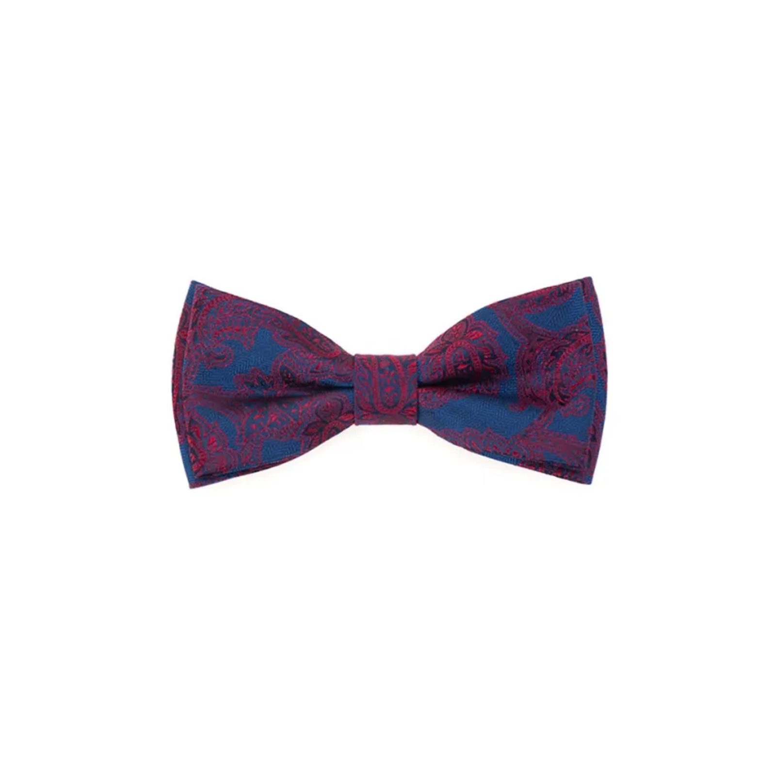 Prepracovaný vzor v kombinácii modrej a vínovej farby pôsobí výrazne, no zároveň elegantne. Motýlik v tomto prevedení je vhodný pre outfity, ktoré majú zaujať detailom bez toho, aby pôsobili prehnane.