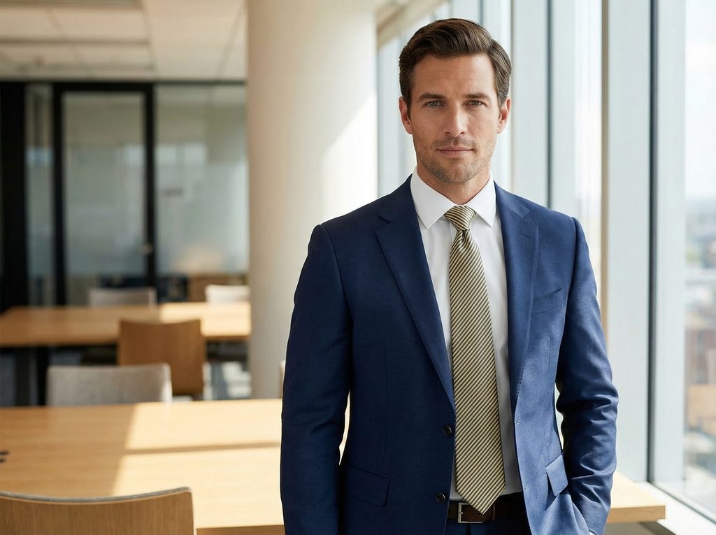 Pruhovaná kravata krásne vynikne s bielou košeľou, kde kontrast najviac vystúpi, no dobre ladí aj so svetlomodrou košeľou pre jemnejší výsledok. V kombinácii s tmavomodrým oblekom alebo sivým oblekom vzniká vyvážený celok. Pre formálnejší vzhľad môžete zvoliť aj čierny oblek. Outfit doplní vreckovka do saka v jednoduchom prevedení alebo jemne ladená a tiež traky, ktoré celok prirodzene dotvoria.