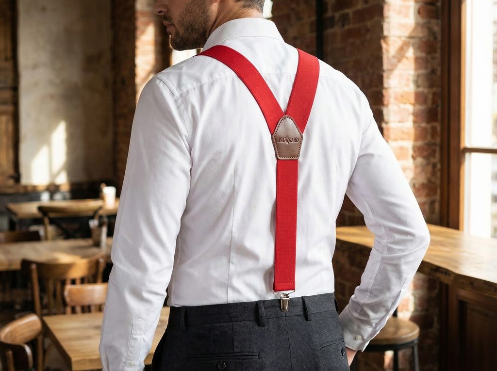 Červené traky môžu dobre vyniknúť napríklad s bielou košeľou, tmavým sakom alebo sivými nohavicami. Kombinácia červenej farby a hnedej kože pôsobí výrazne a môže byť zaujímavým doplnkom elegantného aj moderného outfitu.