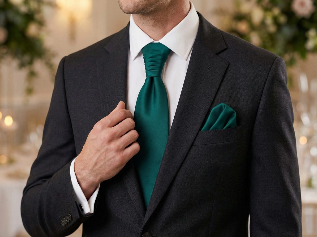 • Hlboký tmavozelený tón • Matné prevedenie • Hotová forma • Nastaviteľná veľkosť • Vreckovka v sete